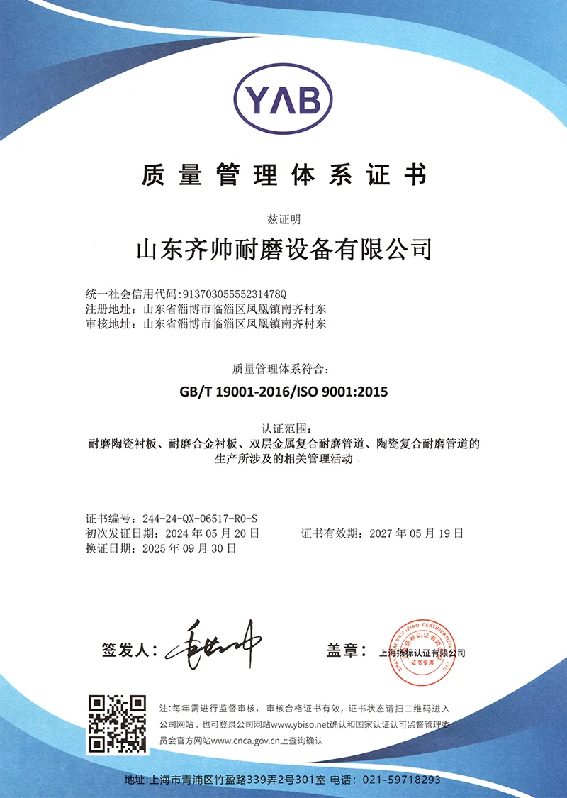 Компанијата е сертифицирана ISO9001 и е наградена со бројни патенти за корисни модели, заработувајќи признание за својата технолошка сила. Ние поседуваме сопствена фабрика и сме длабоко вклучени во индустријата на производи отпорни на абење повеќе од една деценија.