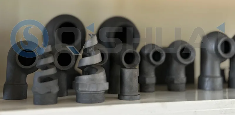 Млазниците од силикон карбид често се наоѓаат во системите за отстранување прашина, обложување со прскање, десулфуризација и согорување како делови отпорни на абење. Покрај снабдените едноставни профилни млазници, Qishuai може да ги исполни и барањата на клиентите со дизајнирање нови млазници со агол на прскање, брзина на проток и модификации на отпорност на корозија доколку е потребно. SiC го продолжува времето на работа на опремата и ги намалува трошоците за животниот век.