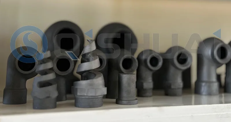 За да се исполнат тешките услови за работа, развивме прскалки со силикон карбид со високи перформанси, чии вкупни перформанси се далеку подобри од традиционалните материјали како што се металните млазници и керамичките млазници.